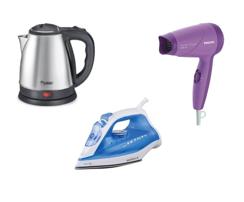 Hair Dryer, Iron, Electric Kettle Price – 3000/- MRP- 4500/-